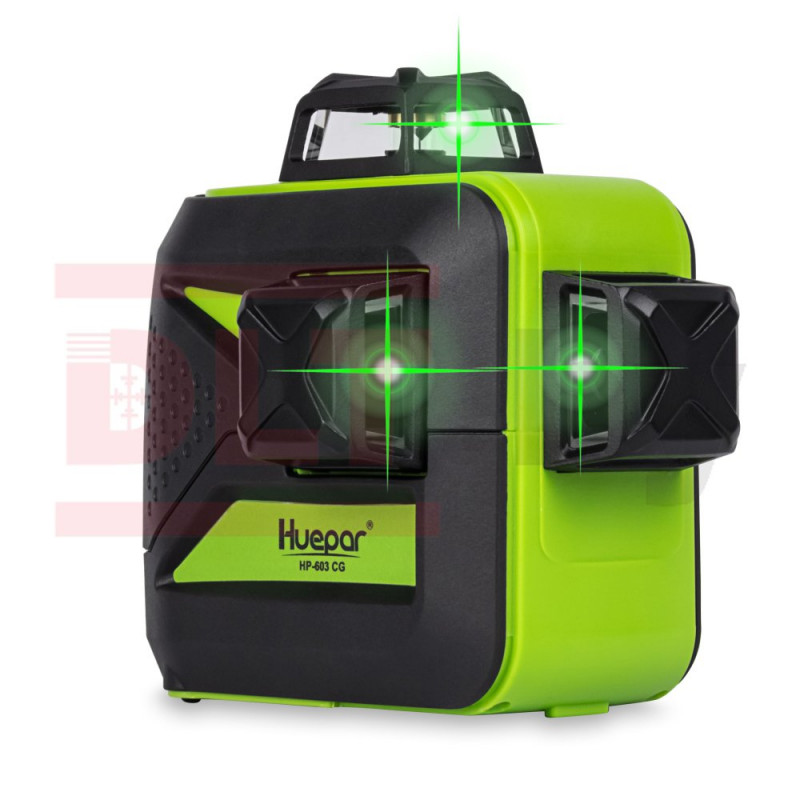 При помощи лазерного уровня можно создавать проекции как по вертикали, так и по горизонтали. Помимо этого, нивелир может спроецировать практически на любую поверхность оси координат, имеющие вид креста либо точку, способную пробивать одновременно на потолок и на пол по аналогии современного отвеса. Проекция при этом охватывает по периметру фактически всё помещение, где проводятся ремонтные работы. Лазерный уровень Huepar HP-603CG оснащен зелеными японскими LD лазерами компании SHARP. В отличие от уровней с китайскими LED
