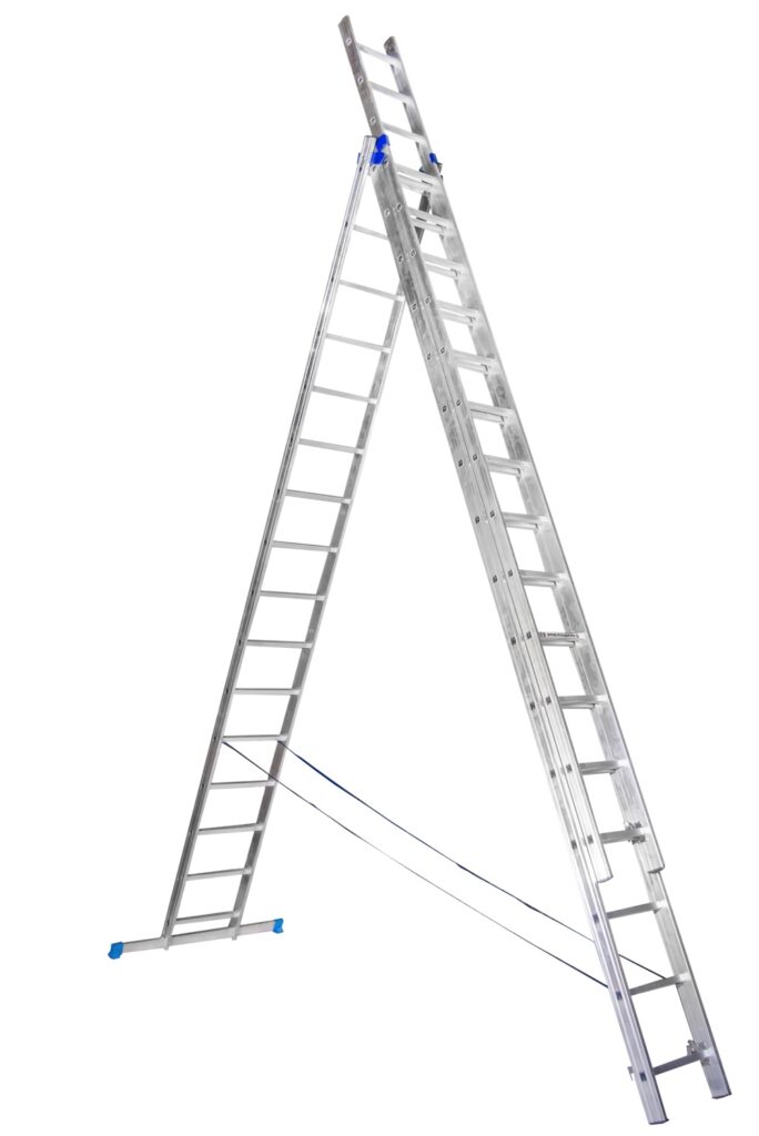 Лестница трёхколенная — конструктивно выдвижная лестница включает три телескопически перемещаемых колена, при изготовлении которых применяются однотипные профили и детали. Лестница переносится, устанавливается в вертикальном положении еще в неразложенном виде, а затем выдвигается (а по окончанию работ и складывается) двумя людьми.